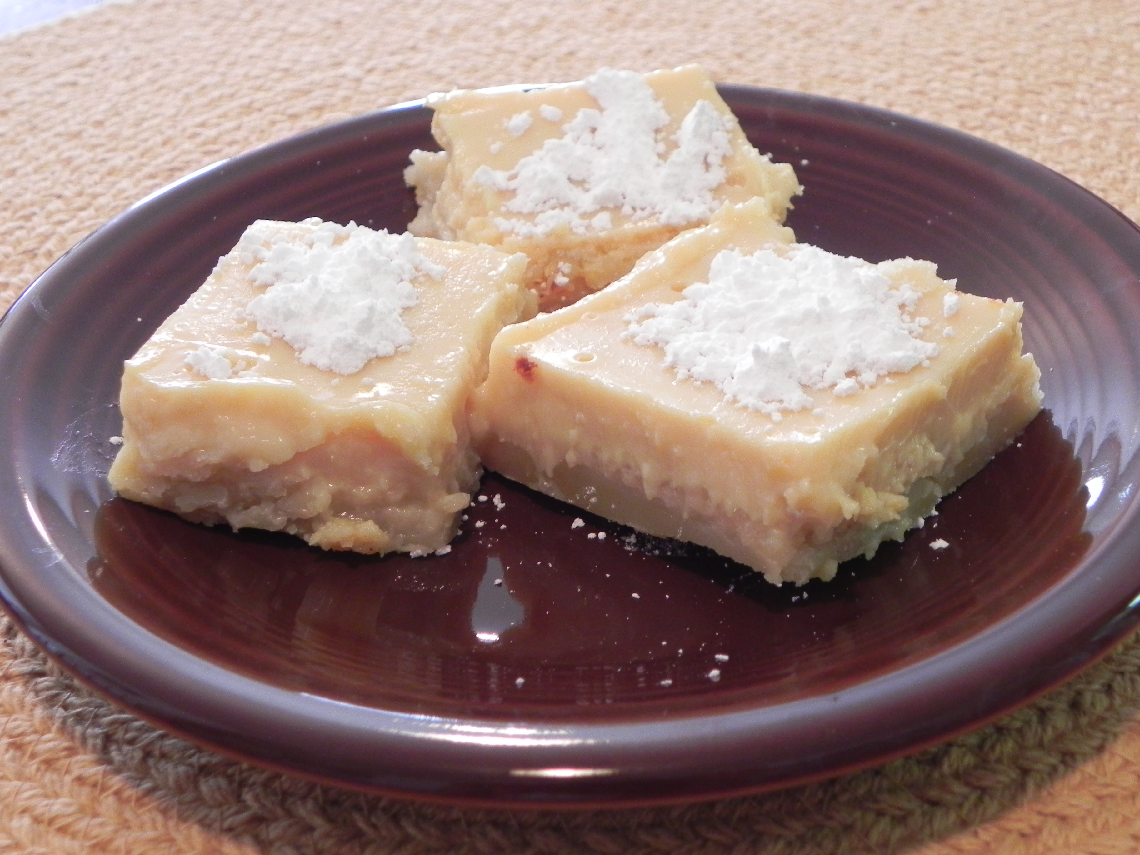 I read accounts of this particular version of lemon squares here and here and here. I’m sure it’s elsewhere too.