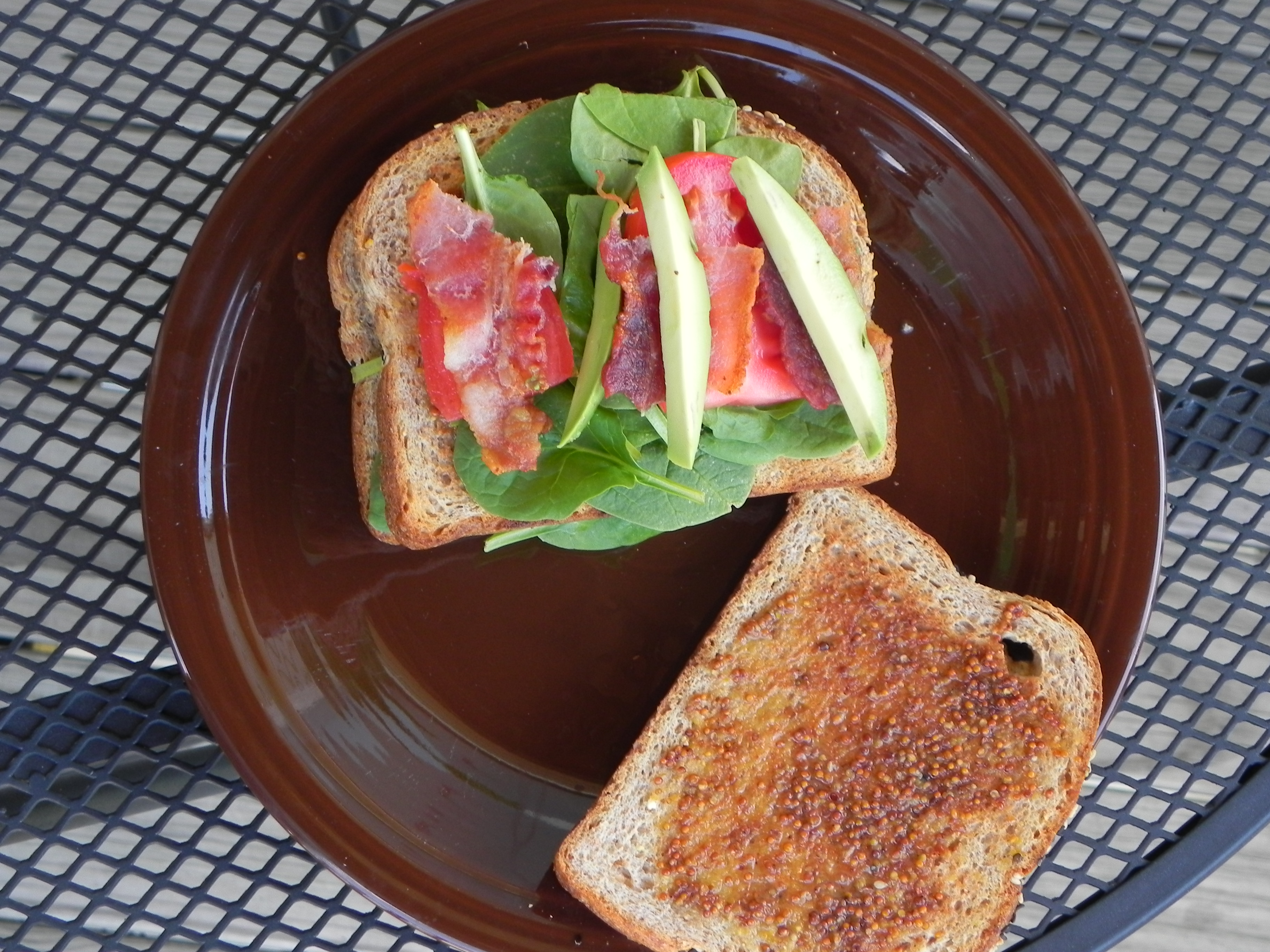 Need a simple, yet tasty and impressive-looking lunch? Well, your search is over. I whipped up this quick sandwich, which I have affectionately dubbed the BAST [bacon, avocado, spinach, tomato] several weeks ago in an attempt to use up some ingredients in the fridge before we headed out of town for the weekend. [Yes, I’m behind. We’ve been gone 5 out of the last 6 weekends, so this long Memorial Day weekend was much appreciated since we were actually home.]