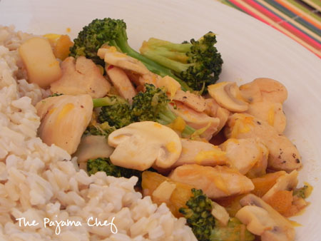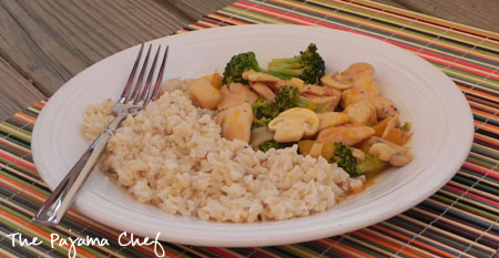 Pour in orange sauce and toss to coat. Serve over hot cooked brown rice.