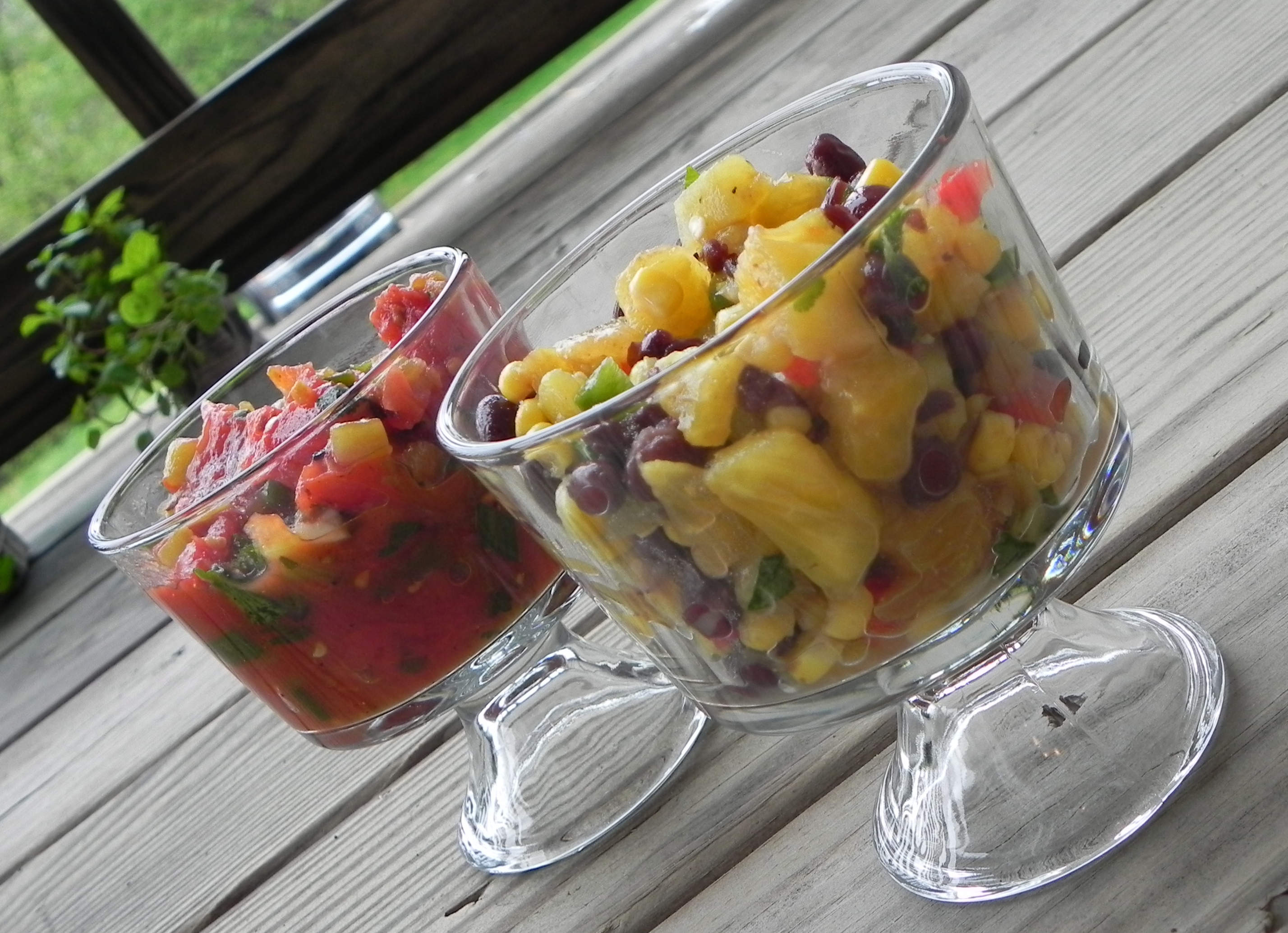 There are two salsa recipes to share with you today, in honor of Cinco de Mayo. The first is Simple Tomato Salsa. With just a little bit of kick and some distinct, pure tomato taste, this salsa is fabulous for any authentic Mexican fiesta. [well…. authentic… not sure I’m qualified for that but any fiesta will do!]. The second is Pineapple Salsa. This stuff is awesome! I experimented around with this recipe the first summer we were married and I’ve made it several times since then. Sometimes I add some mango into the mix, but other times I keep it simple. This time, I kept it simple by choice as my Indiana grocery store was fresh outta mangoes. Sad day. But what I love about this salsa is the contrast between sweet pineapple, cool corn, crunchy peppers, and just the right amount of spice from my friend Mr. Serrano Pepper. Fabulous. I could go on and on all day about these babies but I gotta run… going shopping today! The semester is over and I’m taking a break today before my summer schedule begins next week. Happy Cinco de Mayo!